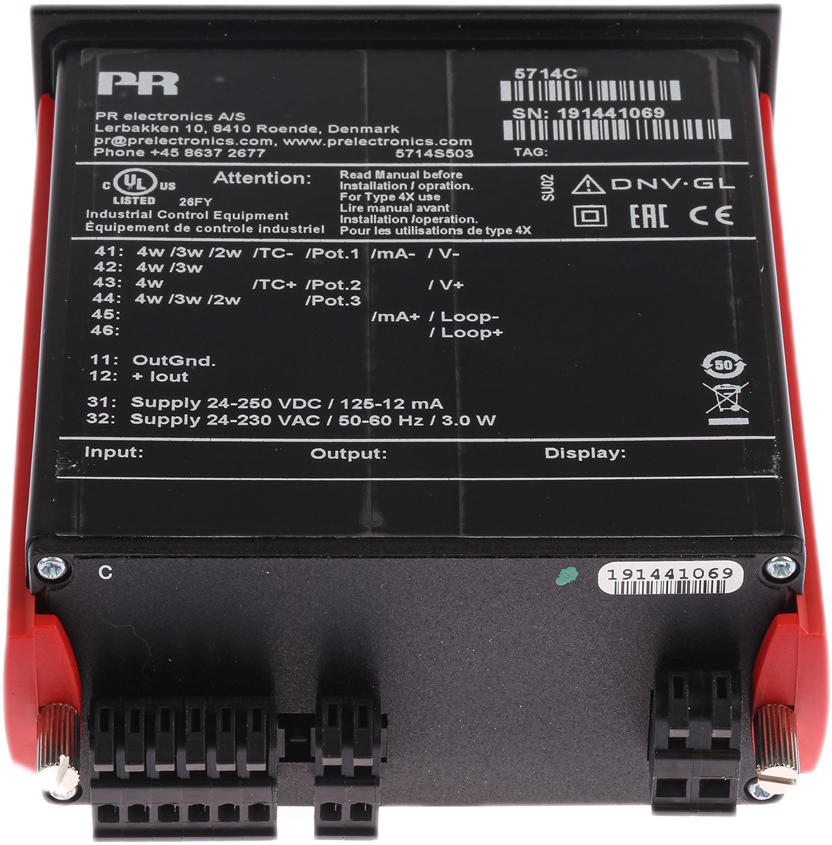 This is LED Digital Panel Multi-Function Meter manufactured by PR Electronics. The manufacturer part number is 5714C. It features a remarkable led display. A bespoke product is a robust programmable led indicator meter with various applications. Moreover, its cutout is 91.5mm in width . The product 5700, is a highly preferred choice for users. It contains 4 digits . Its digit height is about 13.8 mm . While its minimum temperature is -20°c. The product comes in 120mm depth. The product has +60°c maximum temperature. The product complies with en 61010-1, en 61326-1, gost r, ul 508. Its cutout height is 44.5mm . Additionally, it measures current, potentiometer signals, resistance, temperature, voltage properties .
