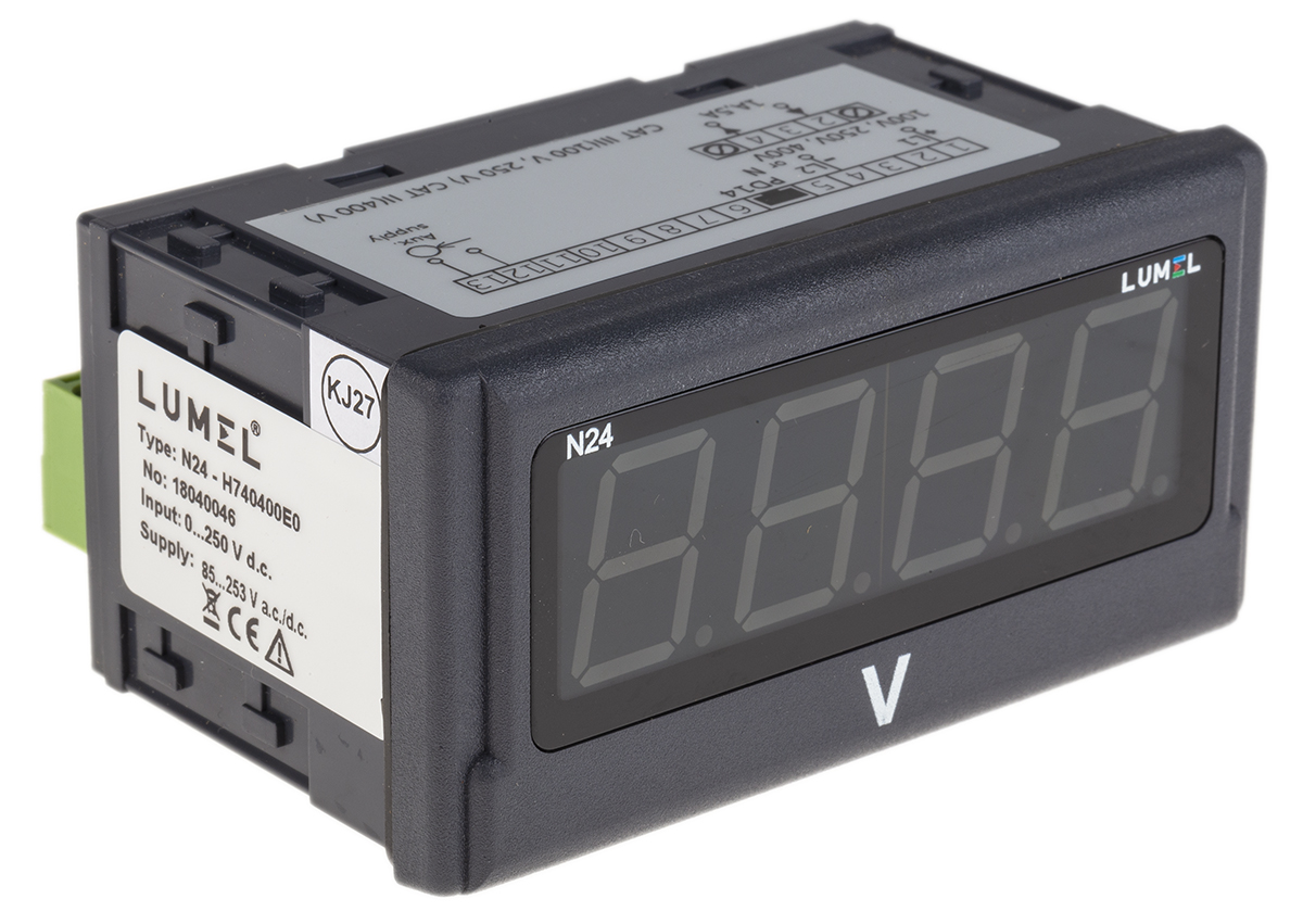 This is LED Digital Panel Multi-Function Meter for High DC Current Signal High DC Voltage Signal manufactured by Lumel. The manufacturer part number is N24-H740400E0. It features a remarkable led display. A bespoke product is a robust digital meter with various applications. Moreover, its cutout is 45mm in width . It has a minimum -600 v dc, -300 v dc, -120 v dc, -6 a, -1.2 a, 0 v dc measurement capacity . The product n24, is a highly preferred choice for users. Its measurement range is 0 → 110 v dc, 0 → 275 v dc, -1.2 → 1.2 a, -120 → 120 v dc, -300 → 300 v dc, -6 → 6 a, -600 → 600 v dc . It contains 4 digits . Its digit height is about 20 mm . While its minimum temperature is -10°c. The product comes in 64mm depth. The product has +55°c maximum temperature. The product complies with ce certified. Its cutout height is 92mm . Additionally, it measures high dc current signal, high dc voltage signal properties .