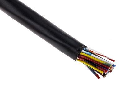 This is 25 Core Unscreened Black PVC Industrial Cable 0.055 mm² CSA 100m manufactured by RS Pro. The manufacturer part number is 660-4009. The product has a flame retardant fire behaviour. The product has a current rating of 250 ma. The sheath is constructed from durable and adorable polyvinyl chloride pvc material. The conductor has 384 ω/km resistance. It has a/an unscreened type screen . The conductor is made from copper material. It has a maximum operating temperature of +80°c. Moreover, the product has a nominal 250 v voltage rating. It has a drain wire included no . The core strands are 7/0.1 mm. The sheath has an adorable black colour. Its accurate length is 100m. Features 30 awg - American Wire Gauge. It has a robust pvc insulation material. Whereas, the minimum operating temperature of the product is -20°c. Screen Options - unscreened. The product consists of 25 cores. Its outer diameter is 5.8mm. The product has 0.055 mm² cross section area.
