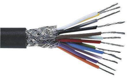 This is 25 Core Screened Black PVC Industrial Cable 0.055 mm² CSA 100m manufactured by RS Pro. The manufacturer part number is 660-0417. Features 30 awg - American Wire Gauge. The product has a current rating of 250 ma. The sheath is constructed from durable and adorable polyvinyl chloride pvc material. The conductor has 345 ω/km resistance. It has a/an tinned copper braid type screen . The conductor is made from copper material. It has a maximum operating temperature of +80°c. Moreover, the product has a nominal 300 v voltage rating. It has a drain wire included no . The core strands are 7/0.1 mm. The sheath has an adorable black colour. Its accurate length is 100m. Screen Options - screened. It has a robust pvc insulation material. Whereas, the minimum operating temperature of the product is -20°c. The product consists of 25 cores. Its outer diameter is 6.3mm. The product has 0.06 mm² cross section area.