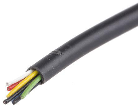 This is 6 Core Industrial Cable 0.6 mm² CSA Unscreened Black PVC Sheath 100m Reel manufactured by RS Pro. The manufacturer part number is 660-3983. The product has a flame retardant fire behaviour. The product has a current rating of 250 ma. The sheath is constructed from durable and adorable polyvinyl chloride pvc material. The conductor has 384 ω/km resistance. It has a/an unscreened type screen . The conductor is made from copper material. It has a maximum operating temperature of +80°c. Moreover, the product has a nominal 250 v voltage rating. It has a drain wire included no . The core strands are 7/0.1 mm. The sheath has an adorable black colour. Its accurate length is 100m. Features 30 awg - American Wire Gauge. It has a robust pvc insulation material. Whereas, the minimum operating temperature of the product is -20°c. Screen Options - unscreened. The product consists of 6 cores. Its outer diameter is 3.3mm. The product has 0.055 mm² cross section area.