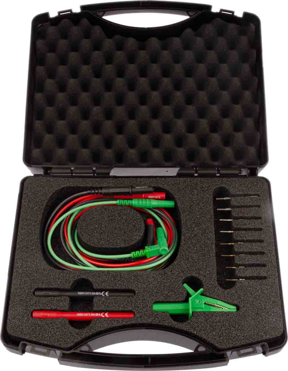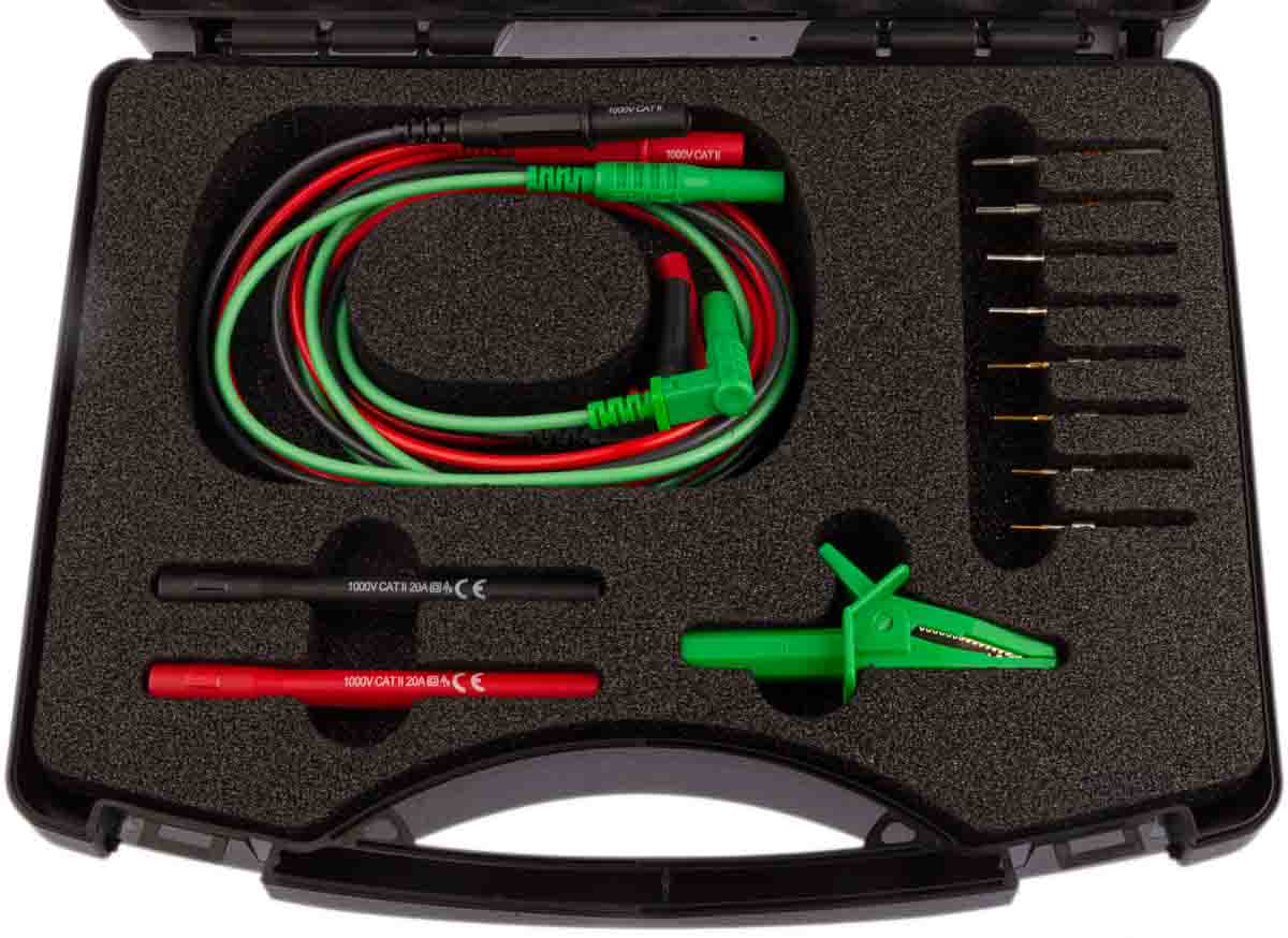 This is 129439 Multi Pin Connector Test Kit CAT II 1000 V manufactured by RS Pro. The manufacturer part number is 731-5286. The product has a current rating of 20a. Moreover, its safety category level is cat ii . The lead is 1.2m long. Its safety category voltage is 1000v . crocodile clip, pin socket, right angle plug Connector type offer robust functionality. It provides robust safety and is complied with cat ii 1000v safety category. It includes multi pin connector test kit type lead .
