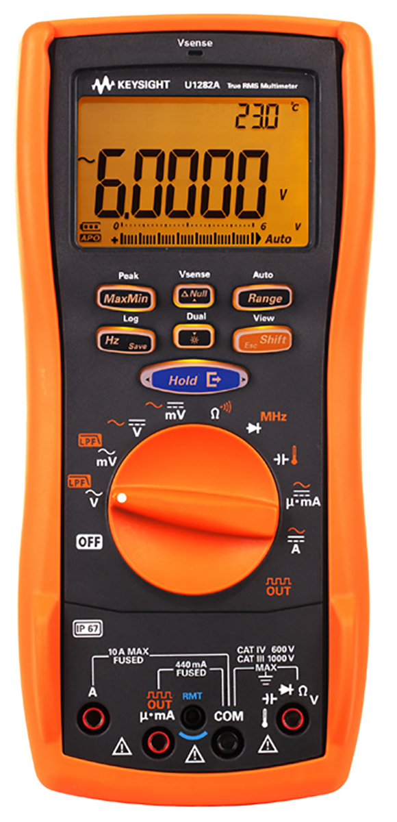 This is Handheld Digital Multimeter manufactured by Keysight Technologies. The manufacturer part number is U1282A. It has a True RMS feature yes . The typical product's weight is 701 (with batteries)g. Moreover, its safety category level is cat iii, cat iv . Its safety category voltage is 600 v, 1000v . While it has u1282a of model number. It features a remarkable digital display. In addition, the height is 218mm. Furthermore, the product is 96mm wide. It is calibrated rscal . Moreover, it has a 0.025 % best DC voltage accuracy . This 4 x 1.5 v aa battery is comparatively much efficient than common batteries. It has a standard handheld type multimeter . Moreover, it has an dc voltage functions measured .