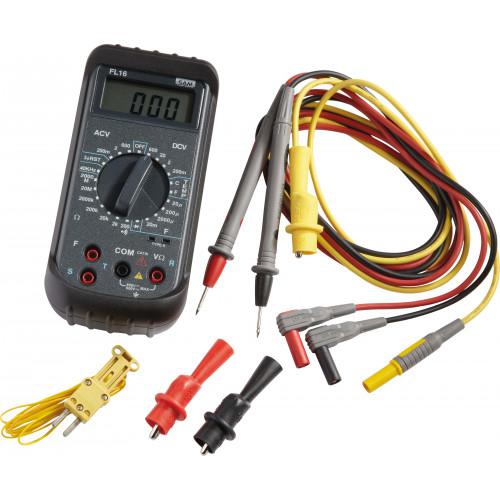 This is Handheld Digital Multimeter 600V ac Max manufactured by SAM. The manufacturer part number is FL-16. It features a remarkable digital display. Additionally, it has an absolute maximum 600v ac voltage measurement . While it has fl-16 of model number. Moreover, it has an absolute maximum 600v dc voltage measurement . It has a standard handheld type multimeter . Additionally, it has an absolute maximum capacitance measurement of 20mf . Whereas, the absolute maximum temperature measurement is +750°c . Moreover, it has an ac current, ac voltage, dc current, dc voltage, resistance, temperature functions measured .