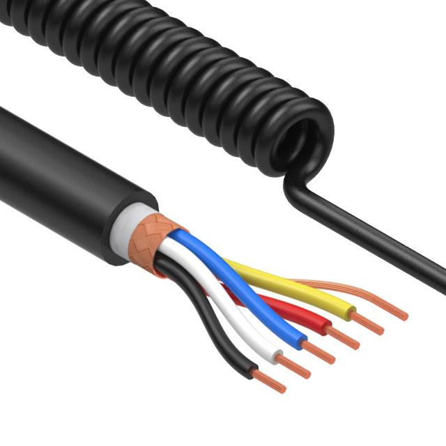 This is manufactured by Tensility International Corp. The manufacturer part number is 31-00070. It is rated with ul style 20280. It is assigned with possible HTSUS value of 8544.49.3080. The product is rohs3 compliant. Its jacket is made from highly insulated thermoplastic polyurethane (tpu) materials. It also features a 19/0.0031" conductor strand. It features 5 conductors. In addition, it is reach unaffected. It is shipped in bulk package . Moreover, the product has a wire gauge of 28 awg. The item is shielded with a braid. Furthermore, the insulated jacket is a 0.0335" (0.851mm) thick. Its typical moisture sensitivity level is 1 (unlimited). Its accurate length is 7.32' (2.23m). The conductor offers excellent insulation due to thermoplastic elastomer (tpe) materials. It has a long 16 weeks standard lead time. It covers shielding capability up to 65%. The splendid features of the product include drain wire. The diameter of the jacket is 0.177" (4.50mm). The conductor is made from copper, bare material. It is a typical round - coiled cable. It carries a 300 v of voltage. The product is shielded with a robust copper, bare shield materials. The product is designated with the ear99 code number. It comes in nice black colour.