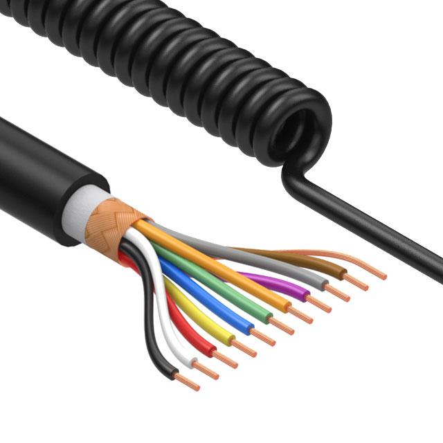 This is manufactured by Tensility International Corp. The manufacturer part number is 31-00150. It is rated with ul style 20280. It is assigned with possible HTSUS value of 8544.49.3080. The product is rohs3 compliant. Its jacket is made from highly insulated thermoplastic polyurethane (tpu) materials. It also features a 26/0.005" conductor strand. It features 10 conductors. In addition, it is reach unaffected. It is shipped in bulk package . Moreover, the product has a wire gauge of 22 awg. The item is shielded with a braid. Furthermore, the insulated jacket is a 0.0315" (0.800mm) thick. Its typical moisture sensitivity level is 1 (unlimited). Its accurate length is 3.68' (1.12m). The conductor offers excellent insulation due to thermoplastic elastomer (tpe) materials. It has a long 16 weeks standard lead time. It covers shielding capability up to 65%. The splendid features of the product include drain wire. The diameter of the jacket is 0.295" (7.49mm). The conductor is made from copper, bare material. It is a typical round - coiled cable. It carries a 300 v of voltage. The product is shielded with a robust copper, bare shield materials. The product is designated with the ear99 code number. It comes in nice black colour.
