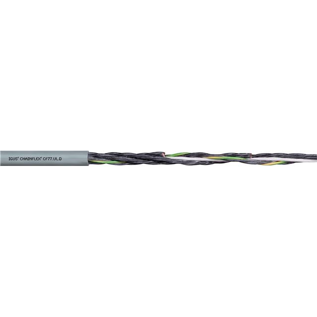 This is manufactured by Igus. The manufacturer part number is CF77-UL-15-05. It is assigned with possible HTSUS value of 8544.49.3080. The product is rohs3 compliant. The product's typical Applications include uses in industrial. It features 5 conductors. In addition, it is reach unaffected. Its jacket is made from highly insulated polyurethane (pu) materials. Moreover, the product has a wire gauge of 16 awg. Its typical moisture sensitivity level is not applicable. Its accurate length is enter number of feet in order quantity. The spool comes in 1000.0' (304.8m) size. The conductor offers excellent insulation due to thermoplastic elastomer (tpe) materials. It has a long 2 weeks standard lead time. The splendid features of the product include abrasion resistant, flame retardant, oil resistant. The diameter of the jacket is 0.335" (8.51mm). The conductor is made from copper, bare material. The product chainflex®, is a highly preferred choice for users. It is a typical multi-conductor cable. In addition, digi-spool®, continuous spool is the available packaging type of the product. It carries a 1000 v of voltage. The product is designated with the ear99 code number. Moreover, it corresponds to cf77-ul, a base product number of the product. It comes in nice gray colour.