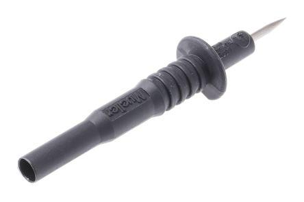 This is Fixed Test Probe 1kV 20A 2mm Tip Size manufactured by Mueller. The manufacturer part number is BU-26101-0. The tip is 2mm in size. The product has a current rating of 20a. Moreover, the product has a nominal 1kv voltage rating. It has a fixed type probe tip . It has a decent black colour. The tip is constructed from stainless steel materials.