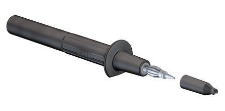 This is Spring Loaded Test Probe 1kV 32A 4mm Tip Size manufactured by HCK. The manufacturer part number is 66.9112-21. The tip is 4mm in size. The product has a current rating of 32a. Moreover, the product has a nominal 1kv voltage rating. It has a spring loaded type probe tip . It has a decent black colour. Its probe socket diameter is about 4mm . Whereas, the minimum operating temperature of the product is -10°c. It has a maximum operating temperature of +80°c.