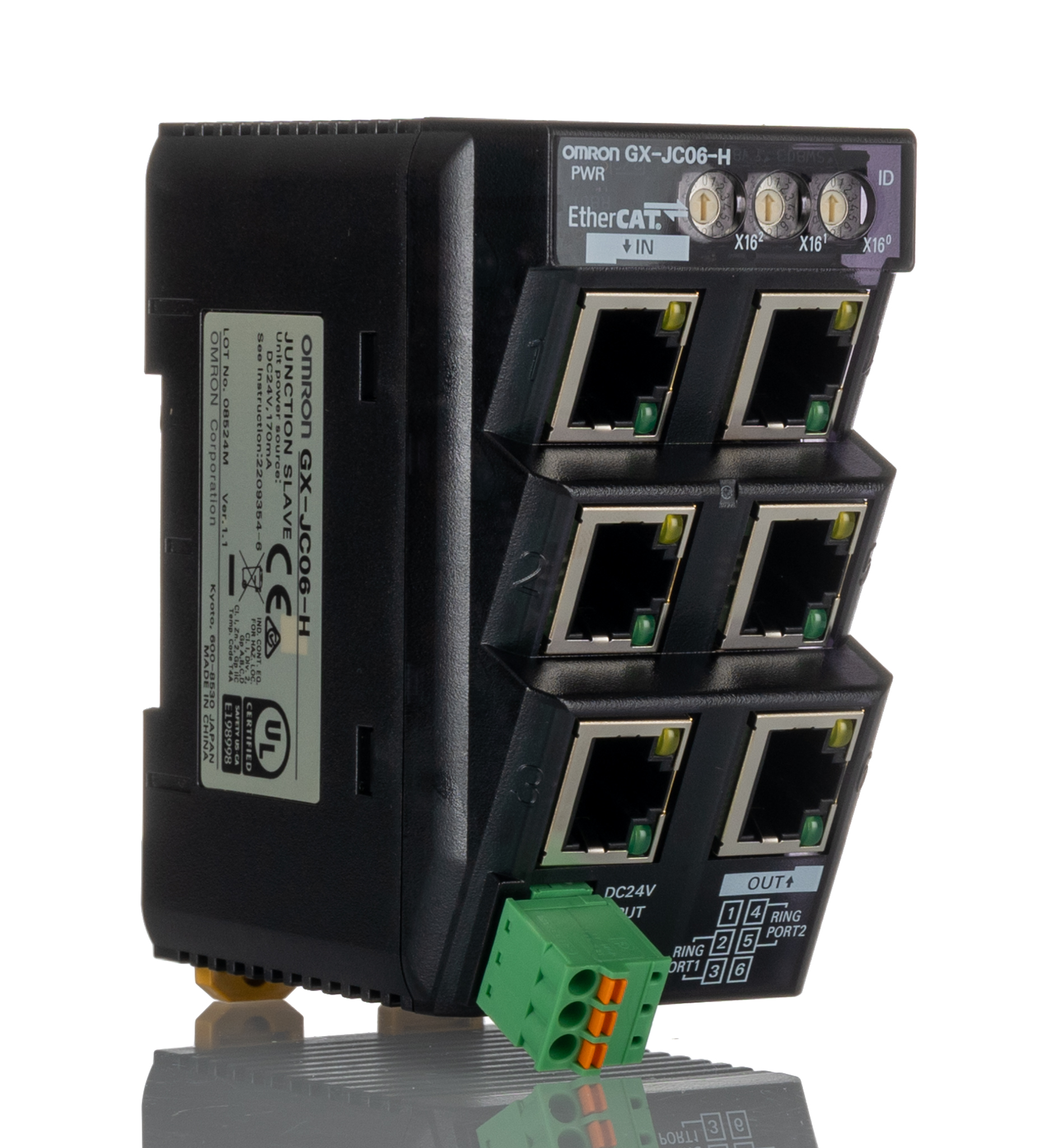 This is Switching hub for use with OMRON Position Control Unit 6 x EtherCAT manufactured by Omron. The manufacturer part number is GXJC06H. It has a minimum 20.4v dc supply voltage . It is created with ethercat type protocol . The given dimensions of the product include 48 x 78 x 90mm. The typical product's weight is 220g. It includes 6 RJ45 ports . It exhibits a typical 24v dc nominal supply voltage . The product ethercat junction slave, is a highly preferred choice for users. This product features 6 number of ports. In addition, the height is 90mm. Furthermore, the product is 48mm wide. The product comes in 78mm depth. Whereas, the minimum operating temperature of the product is -10°c. It is offered with an attractive din rail mounting . The product is highly suitable for omron position control unit. The product requires a maximum 28.8v dc supply voltage . In addition, it includes 0 USB ports . It has a maximum operating temperature of +55°c.