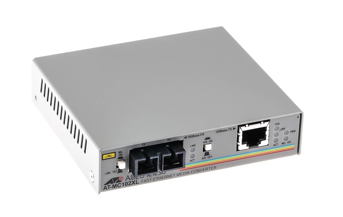 This is Desktop Media Converter manufactured by Allied Telesis. The manufacturer part number is ATMC102XL. The given dimensions of the product include 105 x 95 x 25mm. It includes 1 RJ45 ports . It has a gigabit network speed class . This product features 2 number of ports. In addition, the height is 25mm. It has a power over ethernet PoE feature included no . Furthermore, the product is 105mm wide. The product comes in 95mm depth. It has a model mc102xl. It is offered with 0 SFP ports . It is designed with 10/100mbit/s of network speed . Quality product with a unmanaged switch type.