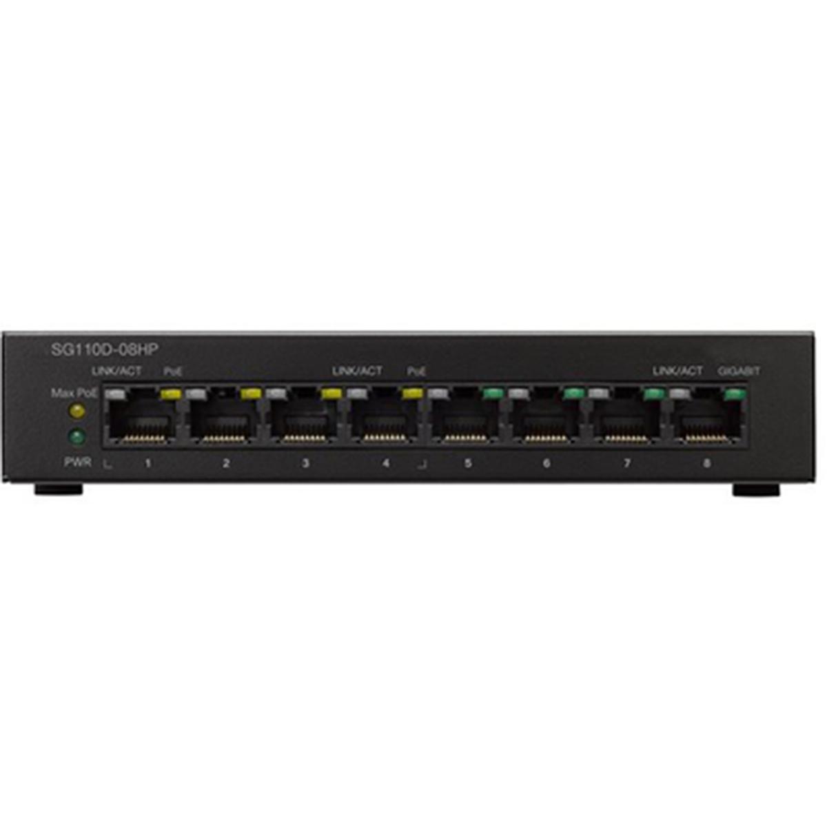 This is SG110D-08HP 8 Port Gigabit Ethernet Switch manufactured by Cisco. The manufacturer part number is SG110D-08HP-UK. The given dimensions of the product include 160 x 30 x 128.5mm. It includes 8 RJ45 ports . It has a gigabit network speed class . This product features 8 number of ports. In addition, the height is 128.5mm. It has a power over ethernet PoE feature included yes . Furthermore, the product is 160mm wide. The product comes in 30mm depth. It has a model sg110d-08hp. It is designed with 10/100/1000mbit/s of network speed . Quality product with a unmanaged switch type.