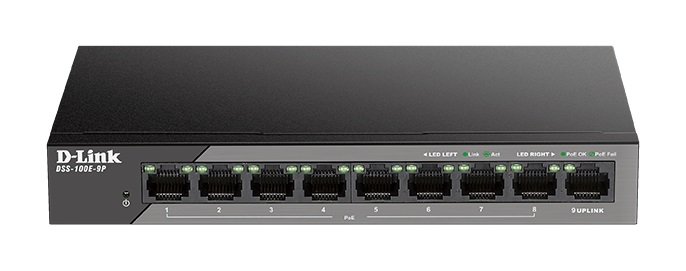 This is 9 port Unmanaged Ethernet Switch PoE manufactured by D-Link. The manufacturer part number is DSS-100E-9P. It has a power over ethernet PoE feature included yes . This product features 9 number of ports. It has a model dss-100e. It is offered with 0 SFP ports . Quality product with a unmanaged switch type.