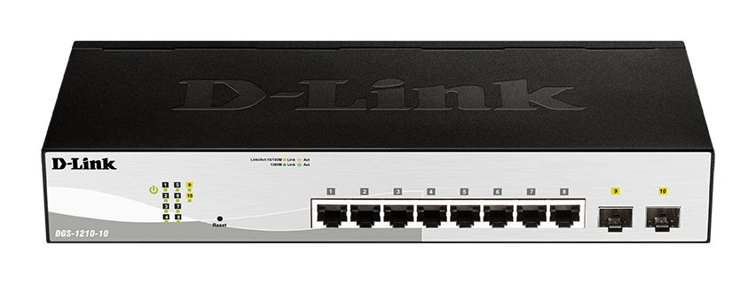 This is Wifi Managed Smart 10 Port Smart Switch EU manufactured by D-Link. The manufacturer part number is DGS-1210-10/E. The given dimensions of the product include 280 x 126 x 44mm. It includes 8 RJ45 ports . It has a gigabit network speed class . The product dgs-1210 series, is a highly preferred choice for users. This product features 10 number of ports. The plug is a highly reliable eu with long service life. In addition, the height is 44mm. It has a power over ethernet PoE feature included no . Furthermore, the product is 280mm wide. The product comes in 126mm depth. It has a model 10-port gigabit smart managed switch. It is offered with 2 SFP ports . It is designed with 10/100/1000mbit/s of network speed . Quality product with a smart switch type.