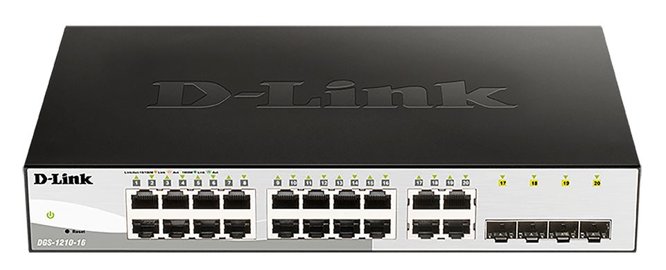 This is 16 Managed Smart 16 Port Smart Switch EU manufactured by D-Link. The manufacturer part number is DGS-1210-16/E. The given dimensions of the product include 280 x 180 x 44mm. It includes 20 RJ45 ports . It has a gigabit network speed class . The product dgs-1210 series, is a highly preferred choice for users. This product features 20 number of ports. The plug is a highly reliable eu with long service life. In addition, the height is 44mm. It has a power over ethernet PoE feature included no . Furthermore, the product is 280mm wide. The product comes in 180mm depth. It has a model 20-port gigabit smart managed switch. It is offered with 4 SFP ports . It is designed with 10/100/1000mbit/s of network speed . Quality product with a smart switch type.