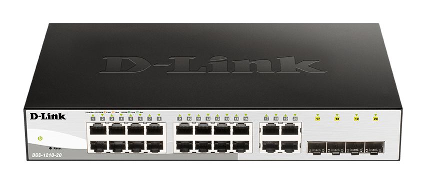 This is Eagle Pro Managed Smart 20 Port Smart Switch EU manufactured by D-Link. The manufacturer part number is DGS-1210-20/E. The given dimensions of the product include 280 x 180 x 44mm. It includes 20 RJ45 ports . It has a gigabit network speed class . The product dgs-1210 series, is a highly preferred choice for users. This product features 20 number of ports. The plug is a highly reliable eu with long service life. In addition, the height is 44mm. It has a power over ethernet PoE feature included no . Furthermore, the product is 280mm wide. The product comes in 180mm depth. It has a model 20-port gigabit smart managed switch. It is offered with 4 SFP ports . It is designed with 10/100/1000mbit/s of network speed . Quality product with a smart switch type.