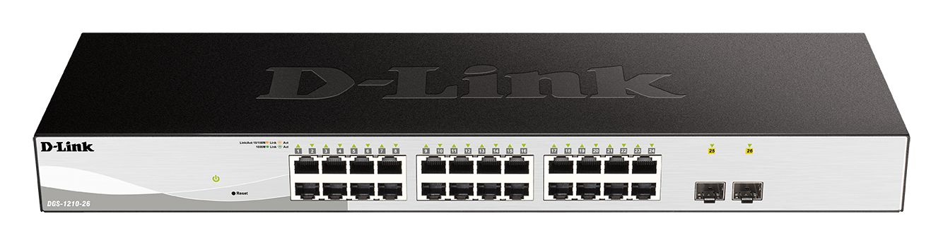This is Managed Smart 26 Port Smart Switch EU manufactured by D-Link. The manufacturer part number is DGS-1210-26/E. The given dimensions of the product include 440 x 140 x 44mm. It includes 24 RJ45 ports . It has a gigabit network speed class . The product dgs-1210 series, is a highly preferred choice for users. This product features 26 number of ports. The plug is a highly reliable eu with long service life. In addition, the height is 44mm. It has a power over ethernet PoE feature included no . Furthermore, the product is 440mm wide. The product comes in 440mm depth. It has a model 26-port gigabit smart managed switch. It is offered with 2 SFP ports . It is designed with 10/100/1000mbit/s of network speed . Quality product with a smart switch type.
