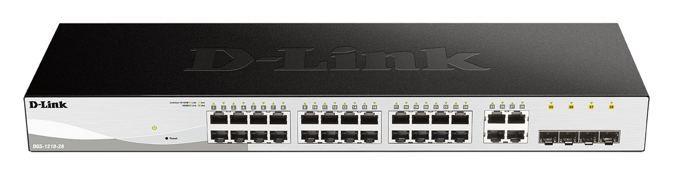 This is Managed Smart 28 Port Smart Switch EU manufactured by D-Link. The manufacturer part number is DGS-1210-28/E. The given dimensions of the product include 440 x 140 x 44mm. It includes 28 RJ45 ports . It has a gigabit network speed class . The product dgs-1210 series, is a highly preferred choice for users. This product features 28 number of ports. The plug is a highly reliable eu with long service life. In addition, the height is 44mm. It has a power over ethernet PoE feature included no . Furthermore, the product is 440mm wide. The product comes in 140mm depth. It has a model 28-port gigabit smart managed switch. It is offered with 4 SFP ports . It is designed with 10/100/1000mbit/s of network speed . Quality product with a smart switch type.