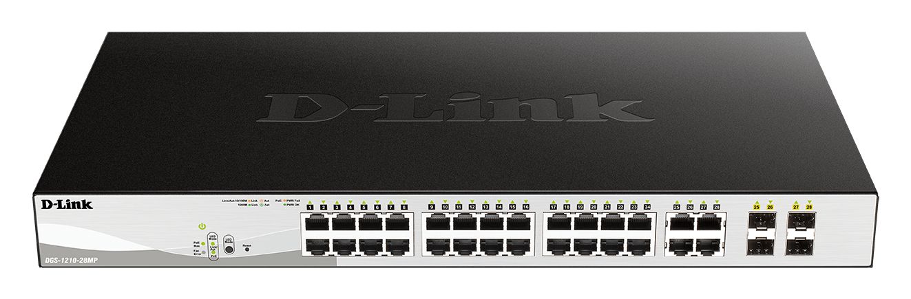 This is Managed Smart 28 Port Smart Switch With PoE EU manufactured by D-Link. The manufacturer part number is DGS-1210-28MP/E. The given dimensions of the product include 440 x 250 x 44mm. It includes 28 RJ45 ports . It has a gigabit network speed class . The product dgs-1210 series, is a highly preferred choice for users. This product features 28 number of ports. The plug is a highly reliable eu with long service life. In addition, the height is 44mm. It has a power over ethernet PoE feature included yes . Furthermore, the product is 440mm wide. The product comes in 250mm depth. It has a model 28-port gigabit smart managed max poe switch. It is offered with 4 SFP ports . It is designed with 10/100/1000mbit/s of network speed . Quality product with a smart switch type.