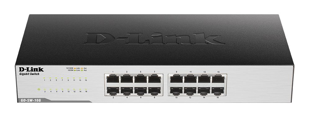 This is GO-SW-16G 16 Port Network Switch EU manufactured by D-Link. The manufacturer part number is GO-SW-16G/E. The given dimensions of the product include 280 x 126 x 44mm. It includes 16 RJ45 ports . It has a gigabit network speed class . The product dlinkgo, is a highly preferred choice for users. This product features 16 number of ports. The plug is a highly reliable eu with long service life. In addition, the height is 44mm. It has a power over ethernet PoE feature included no . Furthermore, the product is 280mm wide. The product comes in 126mm depth. It has a model 16‑port gigabit easy desktop switch. It is offered with 0 SFP ports . It is designed with 10/100/1000mbit/s of network speed . Quality product with a unmanaged switch type.