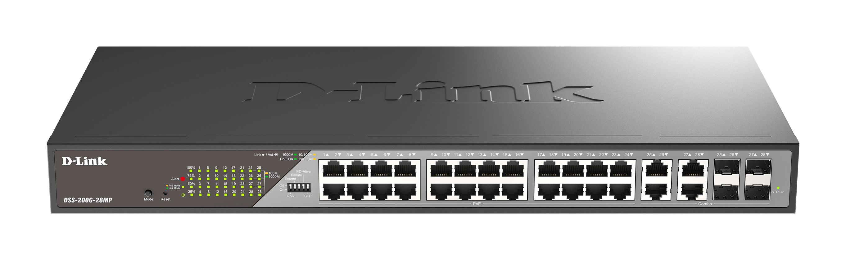 This is Smart 28 Port Gigabit Switch With PoE manufactured by D-Link. The manufacturer part number is DSS-200G-28MP/E. The given dimensions of the product include 440 x 208 x 44mm. It includes 28 RJ45 ports . It has a gigabit network speed class . The product dss-200g series, is a highly preferred choice for users. This product features 28 number of ports. The plug is a highly reliable eu with long service life. In addition, the height is 44mm. It has a power over ethernet PoE feature included yes . Furthermore, the product is 440mm wide. The product comes in 208mm depth. It has a model 28-port gigabit poe smart managed surveillance poe switch. It is offered with 4 SFP ports . It is designed with 10/100/1000mbit/s of network speed . Quality product with a smart switch type.