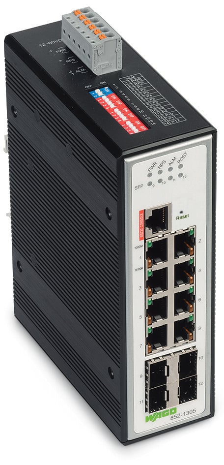 This is Managed 8 Port Industrial Ethernet Switch RJ-45 manufactured by WAGO. The manufacturer part number is 852-1305. This product features 8 number of ports. The plug is a highly reliable rj-45 with long service life. Quality product with a managed switch type.