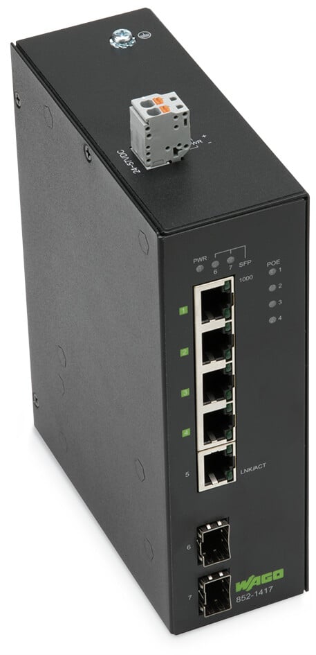 This is Unmanaged 5 Port Industrial Ethernet Switch RJ-45 manufactured by WAGO. The manufacturer part number is 852-1417. This product features 5 number of ports. The plug is a highly reliable rj-45 with long service life. Quality product with a unmanaged switch type.