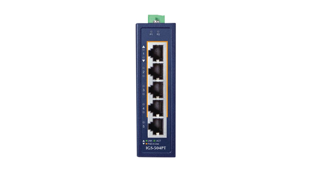 This is Unmanaged 5 Port Ethernet Switch With PoE manufactured by Planet. The manufacturer part number is IGS-504PT. It has a power over ethernet PoE feature included yes . This product features 5 number of ports. It has a model igs-504pt. Quality product with a unmanaged switch type.