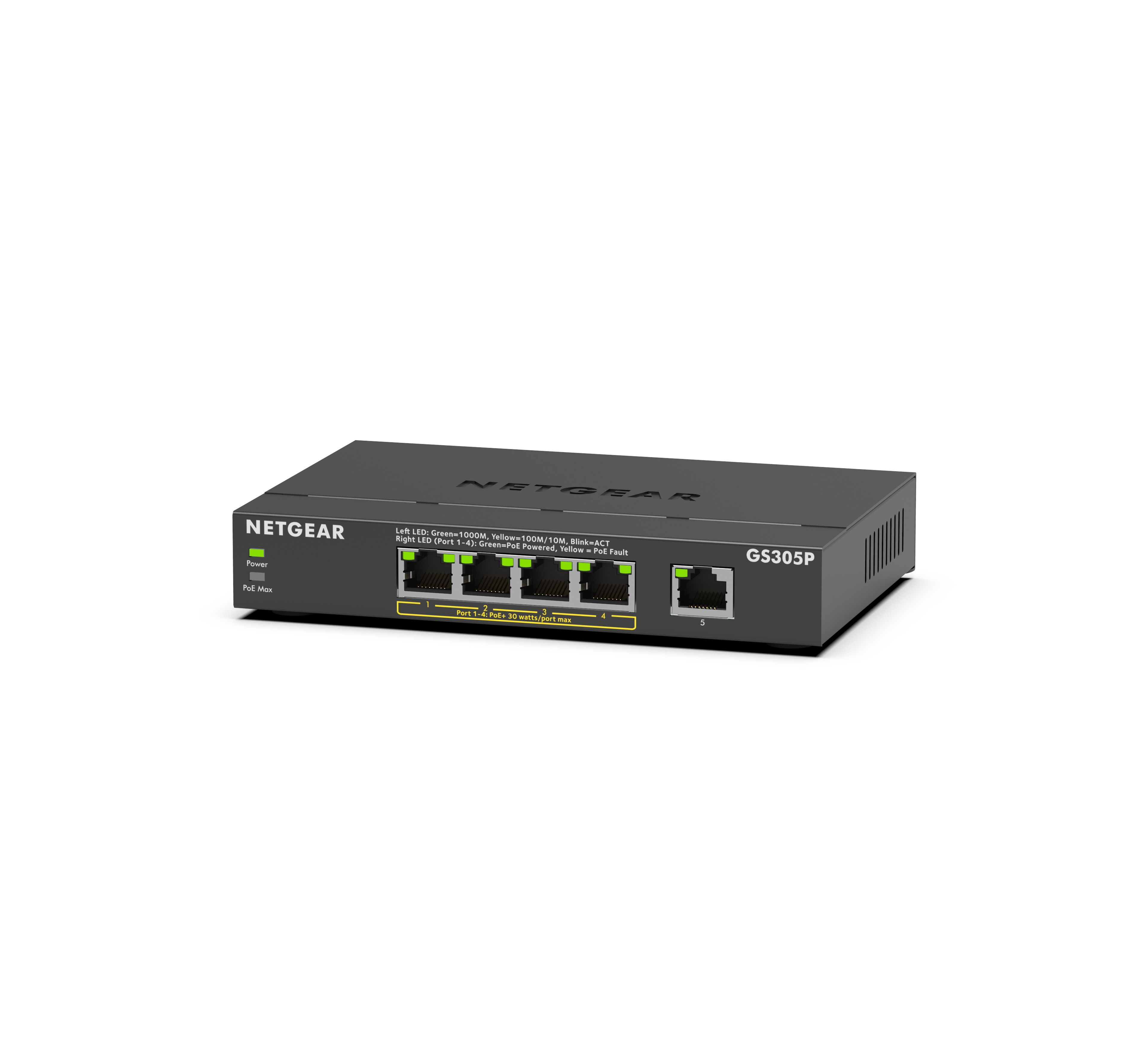 This is Unmanaged 5 Port Ethernet Switch With PoE manufactured by Netgear. The manufacturer part number is GS305P-300EUS. It has a power over ethernet PoE feature included yes . This product features 5 number of ports. It has a model gs305p-300eus. Quality product with a unmanaged switch type.