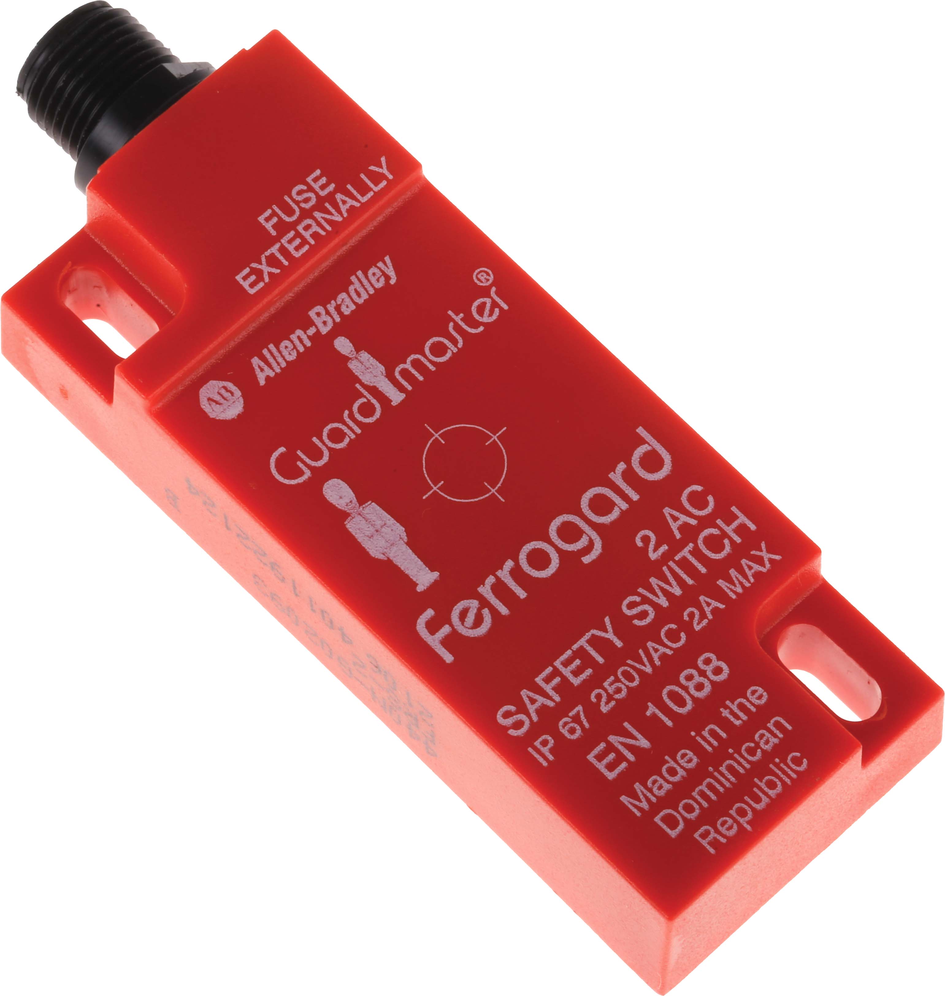 This is Ferrogard 440N Magnetic Safety Switch Coded Actuator Plastic 250 V ac manufactured by Allen Bradley Guardmaster. The manufacturer part number is 440N-G02093. It provides robust safety and is complied with 1 safety category. The housing has an adorable red colour. The product is certified with no hazardous area certification. It includes nc safety contacts . It is IP rated with ip67. The product 440n, is a highly preferred choice for users. It is integrated with 2 a switching current. It switching distance is approximately 12 mm . Its accurate length is 76mm. It includes an actuator yes . The product also features robust abs housing material. Furthermore, the product is 30 mm wide. The product comes in 15mm depth. The product carries magnetic actuator. It has a cuboid body style. It has a/an magnetic sensor principle . non-contact safety switch is a versatile product designed to provide user-defined applications. The terminal is a 4-pin type. It allows 4-pin micro qd connection type.
