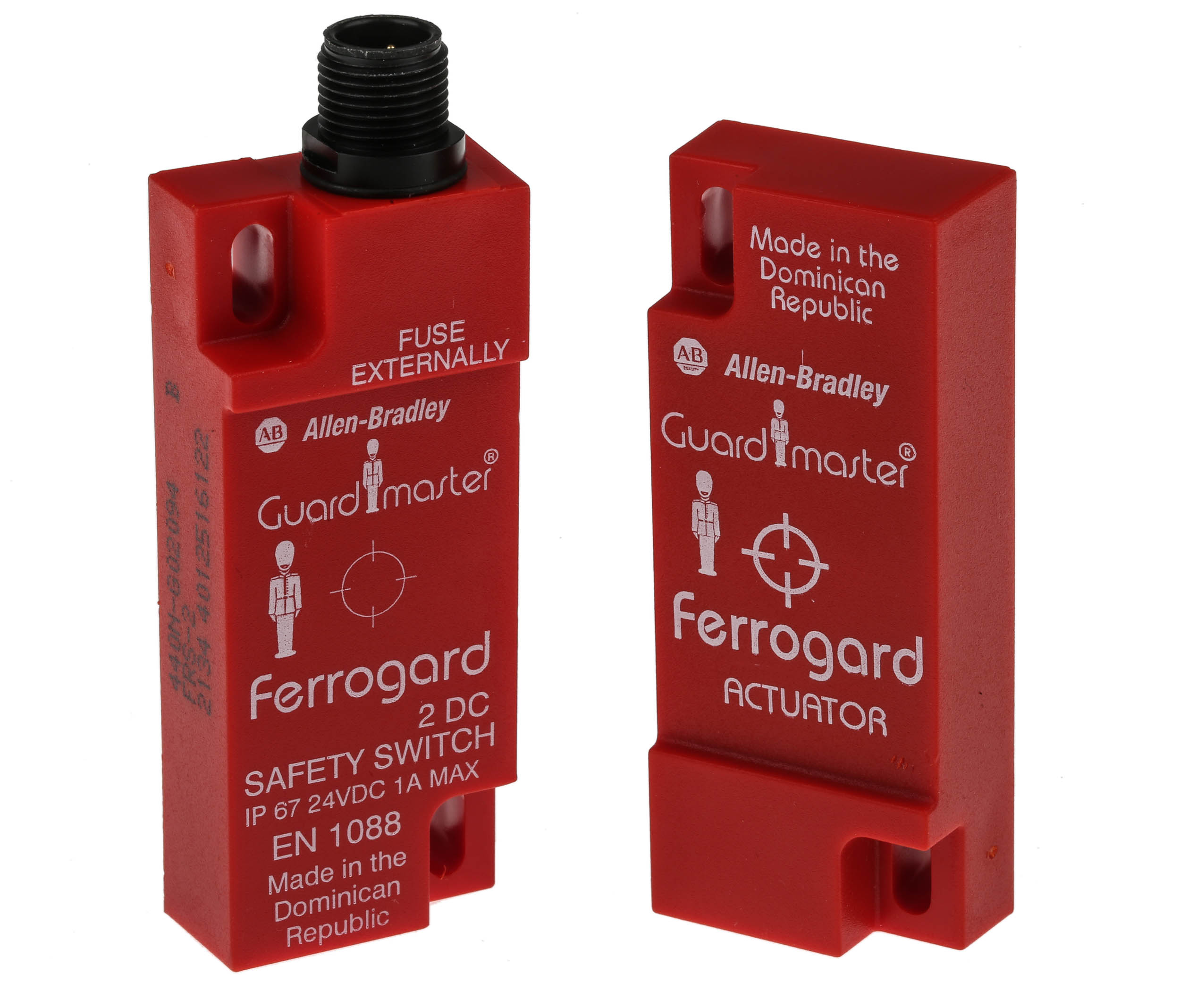 This is Ferrogard 440N Magnetic Safety Switch Coded Actuator Plastic 24 V dc manufactured by Allen Bradley Guardmaster. The manufacturer part number is 440N-G02094. It provides robust safety and is complied with 1 safety category. It includes nc safety contacts . It is IP rated with ip67. The product 440n, is a highly preferred choice for users. It switching distance is approximately 12 mm . Its accurate length is 76mm. It includes an actuator yes . The product also features robust plastic housing material. Furthermore, the product is 30mm wide. The product comes in 15mm depth. Features 24v dc supply voltage. The product carries magnetic actuator. It features ferrogard range. It has no high-quality auxiliary contact . It has a/an magnetic sensor principle . It allows 4-pin micro qd connection type.