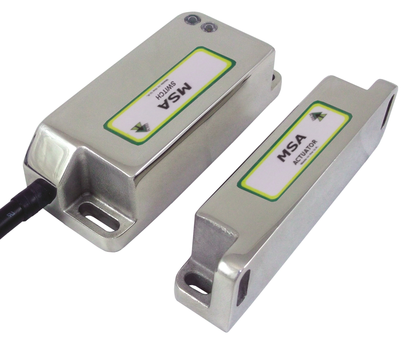 This is MSA Magnetic Safety Switch Master coded Actuator 316 Stainless Steel 24 V dc manufactured by IDEM. The manufacturer part number is 130001. It provides robust safety and is complied with 4 safety category. It has 2 approach directions . The product carries master coded actuator. It is IP rated with ip67, ip69k. The product msa, is a highly preferred choice for users. It switching distance is approximately 10 (close) mm, 15 (open) mm . Its accurate length is 95mm. It includes an actuator yes . The product also features robust 316 stainless steel housing material. Furthermore, the product is 38mm wide. The product comes in 27mm depth. Features 24v dc supply voltage. It has nc high-quality auxiliary contact . It has a/an magnetic sensor principle . It features 100ma supply current. It includes 2nc safety contacts . It allows 2m cable connection type.