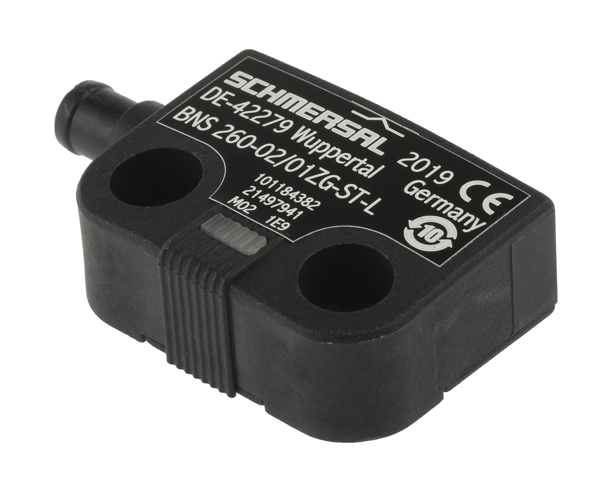 This is BNS260 Magnetic Safety Switch Coded Actuator Plastic 24 V dc manufactured by Schmersal. The manufacturer part number is BNS 260-02/01ZG-ST-L. It provides robust safety and is complied with 4 safety category. It is IP rated with ip67. The product bns260, is a highly preferred choice for users. It switching distance is approximately 5 mm, 15 mm . Its accurate length is 52mm. It includes an actuator no . The product also features robust plastic housing material. Furthermore, the product is 36mm wide. The product comes in 13mm depth. Features 24v dc supply voltage. The product carries coded actuator. It features bns260 range. It has 1no/1nc high-quality auxiliary contact . It has a/an magnetic sensor principle . It features 400ma supply current. It allows m8 connection type.