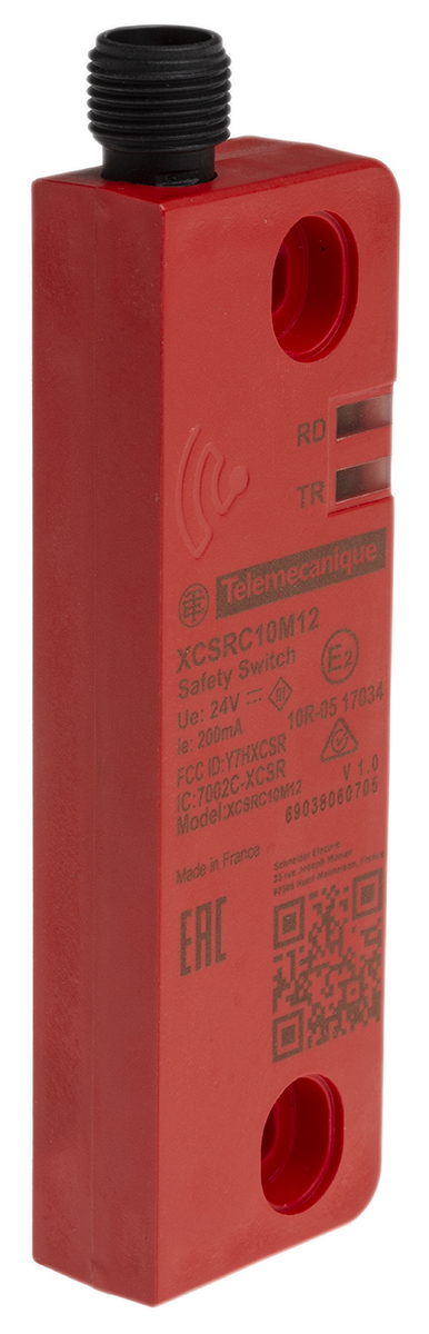 This is Preventa XCSRC RFID Safety Switch Valox 24 V dc manufactured by Telemecanique Sensors. The manufacturer part number is XCSRC10M12. It provides robust safety and is complied with 4 safety category. It has 3 approach directions . It includes 2no safety contacts . It is IP rated with ip65, ip66, ip67, ip69k. The product xcsrc, is a highly preferred choice for users. It switching distance is approximately 10 mm . Its accurate length is 45mm. It includes an actuator no . The product also features robust valox housing material. Furthermore, the product is 30mm wide. The product comes in 108.3mm depth. Features 24v dc supply voltage. It features preventa range. It has a/an rfid sensor principle . It features 60ma supply current. It allows m12 connection type.