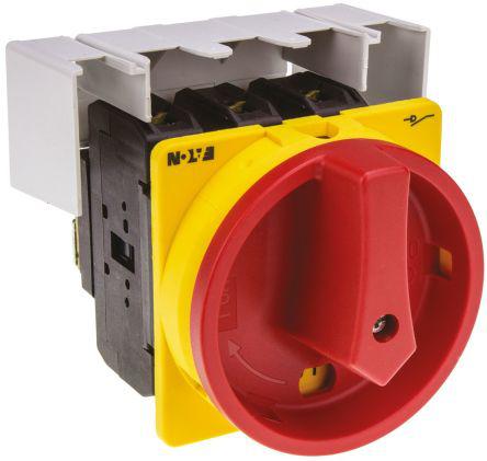 This is 3 Pole Panel Mount Non Fused Isolator Switch NO 63 A 37 kW IP65 manufactured by Eaton. The manufacturer part number is P3-63/EA/SVB. It also carries 63 a maximum current. Moreover, it is designed with 1260 a switch rating . The product is available in panel mount configuration. It is IP rated with ip65. It accepts padlocks yes . It has a maximum operating temperature of +50°c. Whereas, the minimum operating temperature of the product is -25°c. Moreover, the product has a nominal 440 v ac voltage rating. Its accurate length is 65mm. In addition, it has a single throw configuration . Furthermore, the product is 65mm wide. The product comes in 59mm depth. It has auxiliary available contacts yes . The normal state configuration includes no. Its electrical phase configuration includes 3. Feature 37 kw of power rating. It has equipped with 3 poles. The terminal is a screw type. Its handle is of red colour .