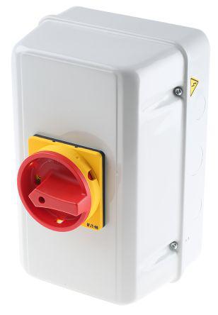 This is 6 Pole Non Fused Isolator Switch NO/NC 100 A IP65 manufactured by Eaton. The manufacturer part number is T5-4-15164/S/SVB-SOND. Whereas, the minimum operating temperature of the product is -25°c. It also carries 100 a maximum current. Moreover, the product has a nominal 440 v ac voltage rating. It accepts padlocks yes . It has a maximum operating temperature of +40°c. It is IP rated with ip65. The normal state configuration includes no/nc. In addition, it has a single throw configuration . It has auxiliary available contacts yes . It has equipped with 6 poles. The terminal is a screw type. Its handle is of red colour .