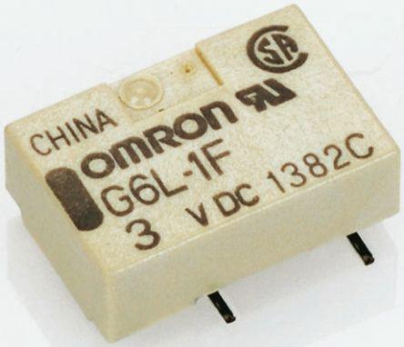 This is SPNO PCB Mount Non-Latching Relay 4.5V dc Coil manufactured by Omron. The manufacturer part number is G6L-1F 4.5DC. The given dimensions of the product include 10.6 x 8.4 x 4.5mm. The coil voltage of the product is 4.5 v dc. Applications Information involves signal. It holds up to 112.5 ω coil resistance. It is capable of doing 300000 (electrical) cycles, 300000 (mechanical) cycles in a lifetime . Robust coil power of 180mw. While it carries 60v dc of maximum DC switching voltage. It bears a maximum 60 w of DC switching power. The product has 1kv ac isolation coil to contact. It has a maximum operating temperature of +70°c. The terminal is a surface mount type. The product has -40 → +70°c of operating temperature range. The contact is equipped with spno configuration. The product comes in 8.4mm depth. It has 3d cad model CAD drawing . The product is available in pcb mount configuration. Its accurate length is 10.6mm. In addition, the height is 4.5mm. It has a maximum AC switching voltage of 125v ac. Whereas, the minimum operating temperature of the product is -40°c.