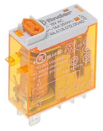 This is SPDT Non-Latching Relay Plug In 12V ac Coil 25 A manufactured by Finder. The manufacturer part number is 4661.8012.0040. The product is available in plug in configuration. Robust coil power of 1.2w. The product 46 series, is a highly preferred choice for users. It is integrated with 25a switching current. The coil voltage of the product is 12 v ac. Its accurate length is 29mm. In addition, the height is 32.8mm. The product comes in 12.4mm depth. It has a maximum AC switching voltage of 440v ac. It also features an AC switching power of 4 kva. The product has 6kv isolation coil to contact. The contact is equipped with spdt configuration. It has equipped with 1 poles. The terminal is a quick connect type. It holds up to 80 ω coil resistance.