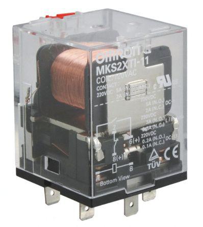 This is DPST Plug In Non-Latching Relay 120V ac Coil 5 A manufactured by Omron. The manufacturer part number is MKS2XTI-11 AC120. The given dimensions of the product include 34.5 x 34.5 x 44.8mm. The coil voltage of the product is 120 v ac. Applications Information involves general purpose, power. It holds up to 1.13 kω coil resistance. It is capable of doing 100000 (electrical) operations, 1000000 (mechanical) operations in a lifetime . Robust coil power of 2.7w. While it carries 220v dc of maximum DC switching voltage. It bears a maximum 1.1 kw of DC switching power. The product has 2.5kv ac isolation coil to contact. It has a maximum operating temperature of +60°c. The terminal is a plug in type. It has board level components y . The product has -40 → +60°c of operating temperature range. The contact is equipped with dpst configuration. The product comes in 34.5mm depth. The product is available in plug in configuration. Its accurate length is 34.5mm. In addition, the height is 44mm. It has a minimum 5 a DC switching current . Whereas, the minimum operating temperature of the product is -40°c. The product is made from sturdy silver alloy materials.