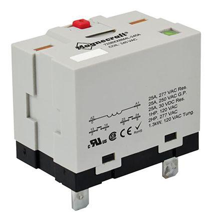 This is DPNO Plug In Non-Latching Relay 12V dc Coil 25 A manufactured by Schneider Electric. The manufacturer part number is 725BXXBM4L-12D. The given dimensions of the product include 33.1 x 47.6 x 50mm. The coil voltage of the product is 12 v dc. Applications Information involves power. It holds up to 75 ω coil resistance. It is capable of doing 6000 (electrical) cycles, 5000000 (mechanical) operations in a lifetime . Robust coil power of 1.9w. While it carries 30v of maximum DC switching voltage. It bears a maximum 500 mw of DC switching power. The product has 4kv rms isolation coil to contact. It has a maximum operating temperature of +55°c. The terminal is a quick connect type. It has a maximum 25 a switching current AC . The product has -20 → +55°c of operating temperature range. The contact is equipped with dpno configuration. The product comes in 47.6mm depth. The product is available in plug in configuration. Its accurate length is 33.1mm. In addition, the height is 50mm. It has a minimum 25 a DC switching current . It has a maximum AC switching voltage of 300v. Whereas, the minimum operating temperature of the product is -20°c. The product is made from sturdy silver alloy materials.