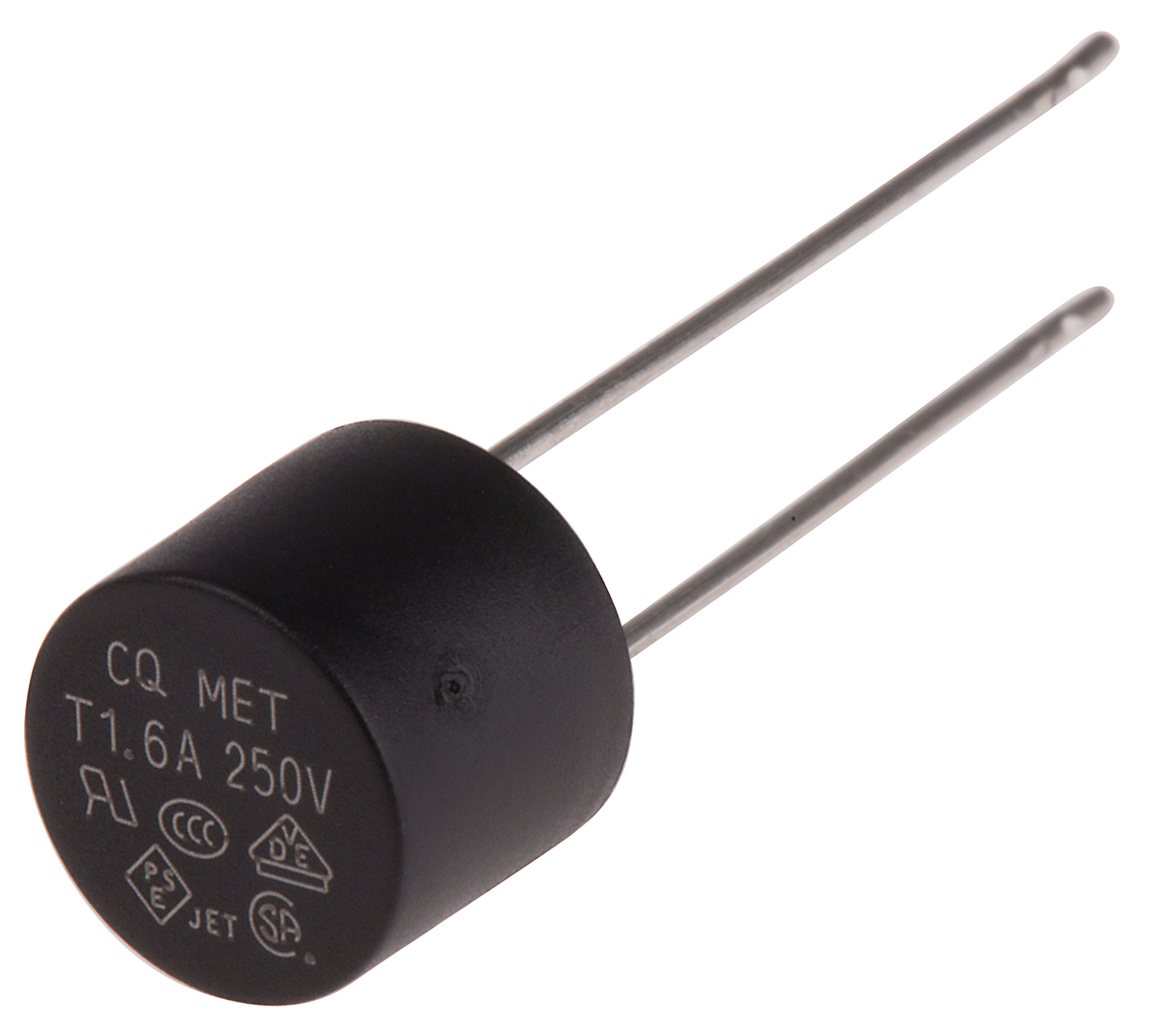 This is 1.6A Radial Non-Resettable Wire Ended Fuse 250V manufactured by RS Pro. The manufacturer part number is 767-5147. Concerning body diameter, it is 8.35mm. It has approximately 5.08mm pitch wire . The product has a current rating of 1.6a. Whereas, the minimum operating temperature of the product is -55°c. Moreover, the product has a nominal 250v voltage rating. It has a standard radial lead orientation . The wire has 0.62mm diameter. Its wire length is about 22mm . The product's body is nicely designed from thermoplastic materials. The fuse has a robust sb speed. Its body height is 7.7mm. The product has 35 a @ 250 v ac breaking capacity at maximum voltage rating. It has a maximum operating temperature of +125°c.