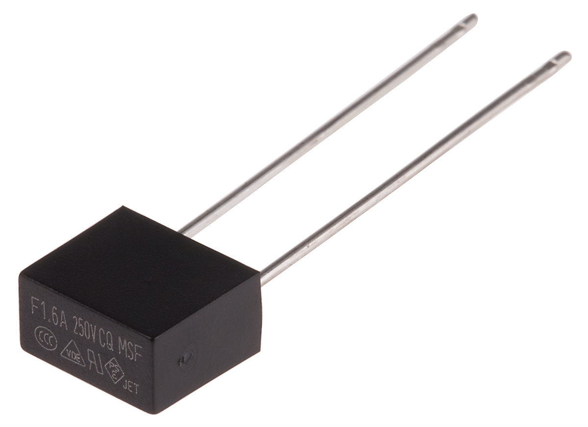 This is 1.6A Radial Non-Resettable Wire Ended Fuse 250V manufactured by RS Pro. The manufacturer part number is 767-5119. It has approximately 5.08mm pitch wire . The product has a current rating of 1.6a. Whereas, the minimum operating temperature of the product is -55°c. Moreover, the product has a nominal 250v voltage rating. It has a standard radial lead orientation . The wire has 0.62mm diameter. Its wire length is about 22mm . The product's body is nicely designed from thermoplastic materials. Its body length is 8.35mm. The fuse has a robust f speed. Its body height is 7.7mm. The product has 35 a @ 250 v ac breaking capacity at maximum voltage rating. Its overall body width is 4.3mm . It has a maximum operating temperature of +125°c.