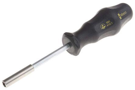 This is 100 mm Nut Driver Hexagon Nut 1/4 in Tip manufactured by Wera. The manufacturer part number is 328463. The tip is 1/4 in in size. The built-in exquisite tip is a hexagon nut tip. It has an overall length of 212 mm. In addition, it has a chrome blade finish . The blade has a length of 100 mm. ESD Safety - yes.