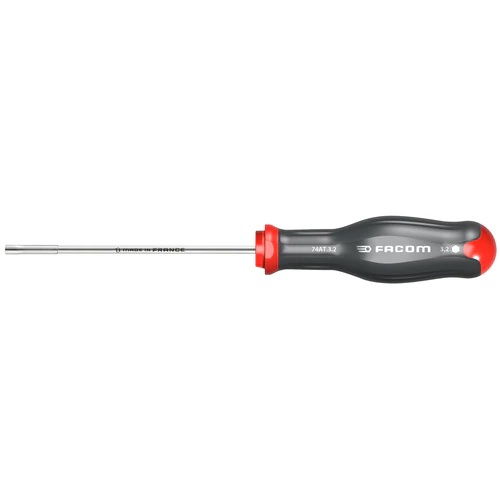 This is 13 mm Hexagon Nut Driver 125 mm Blade Length manufactured by Facom. The manufacturer part number is 74AT.13. The blade has a length of 125 mm. The tip is 13 mm in size. It has an overall length of 250 mm. The built-in exquisite tip is a hexagon tip. In addition, it has a satin chrome plated blade finish .