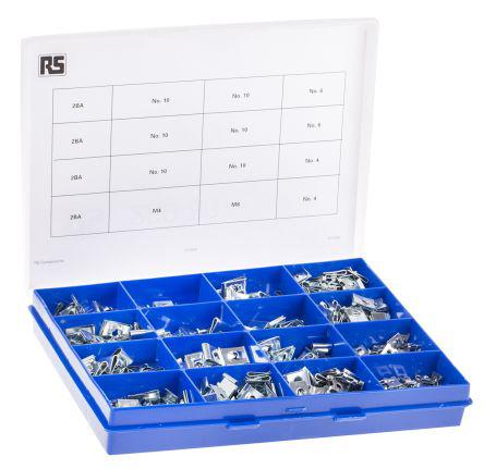 This is 480 Piece Steel Captive Nuts Box manufactured by RS Pro. The manufacturer part number is 289-837. A quality product with a nice galvanised finish. The product is made from highly stable and reliable steel. It has a typical thread size of 2ba, m4, no. 10, no. 4, no. 6, no. 8. It has a captive type nut . The product consists of 480 pieces.