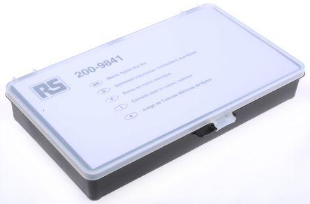 This is 650 Piece Nylon Hex Full Nuts Box manufactured by RS Pro. The manufacturer part number is 200-9841. A quality product with a nice plain finish. The product is made from highly stable and reliable nylon. It has a typical thread size of m10, m12, m2, m2.5, m3, m4, m5, m6, m8. It has a hex full type nut . The product consists of 650 pieces.
