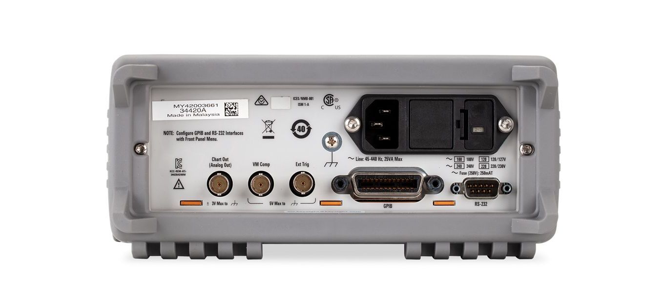 This is Micro Ohm Meter Maximum Resistance Measurement 10 MO Measurement Type Low Resistance manufactured by Keysight Technologies. The manufacturer part number is 34420A. The given dimensions of the product include 254.4 x 374 x 103.6mm. The typical product's weight is 3kg. Measurement includes - low resistance. While it has 34420a of model number. It has a maximum accuracy of ± 0.1% of output + 1 mv . In addition, the height is 103.6mm. Moreover, the product gets power from mains. Furthermore, the product is 254.4mm wide. Its accurate length is 374mm. The product has a maximum 10 mo resistance measurement . Whereas, the minimum operating temperature of the product is 0°c. It has a maximum operating temperature of +55°c.