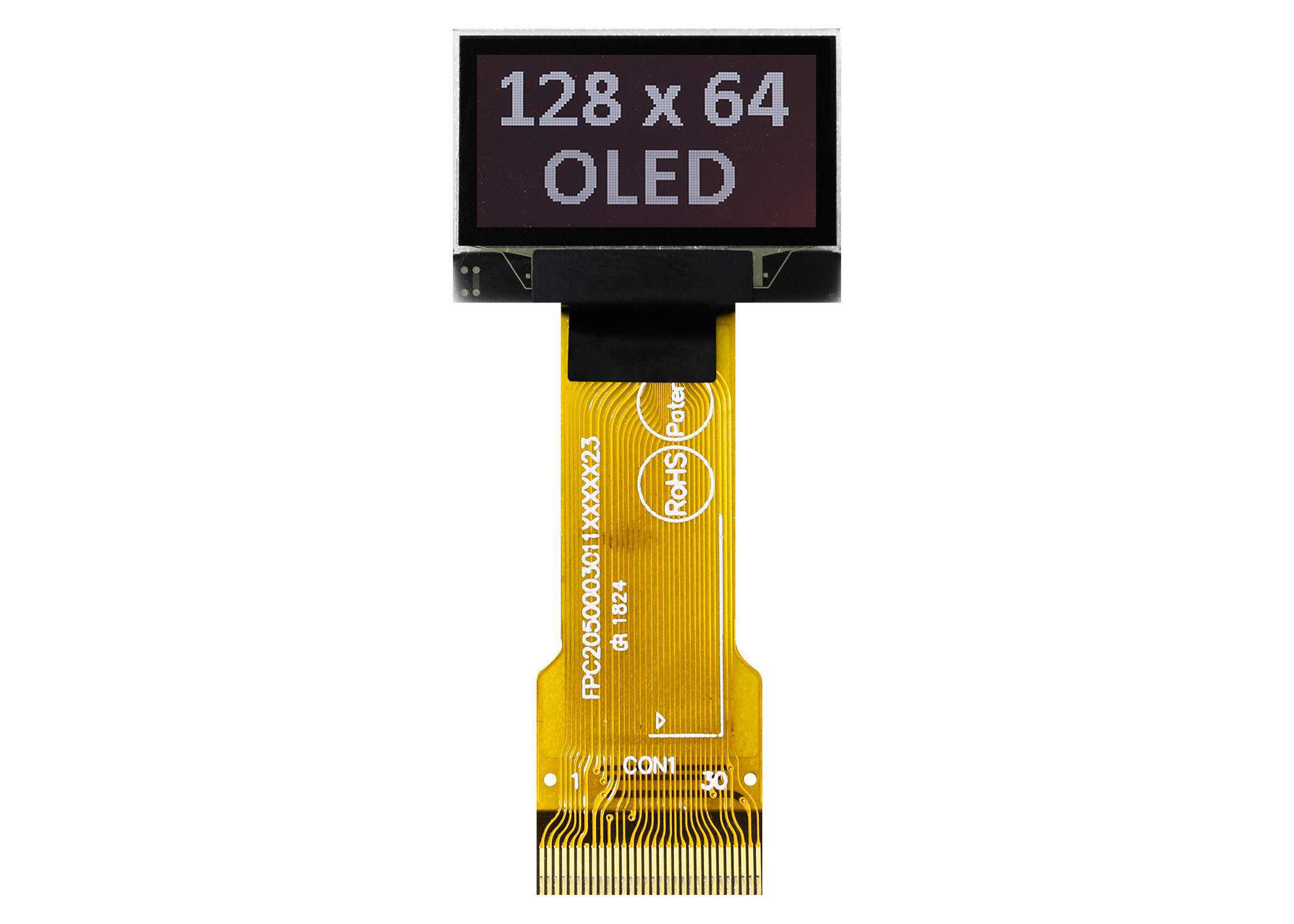 This is 0.96in White Passive matrix OLED Display manufactured by Midas. The manufacturer part number is MDOG128064N4V-WM. Its contrast ratio is 2000:1 . It has a/an white colour display . The given dimensions of the product include 26.70 x 19.26 x 1.26mm. Moreover, it has a i2c, parallel, spi interface ports . The product has -40 → +80°c of operating temperature range. It has a 23.34mm width of viewing area . It has approximately 23.34 x 11.46mm viewing area dimensions . It has a/an passive type matrix . The forward voltage is 3.3 v dc. In addition, it has a standard 11.46mm height of viewing area . In addition, the height is 1.26mm. It has a cog mounting driver . Furthermore, the product is 26.70mm wide. The product comes in 1.26mm depth. Whereas, the minimum operating temperature of the product is -40°c. It has a maximum operating temperature of +80°c. Features 128 x 64pixels resolution. It has about 19.26:1.26 aspect ratio . It has about 0.96in diagonal display size .