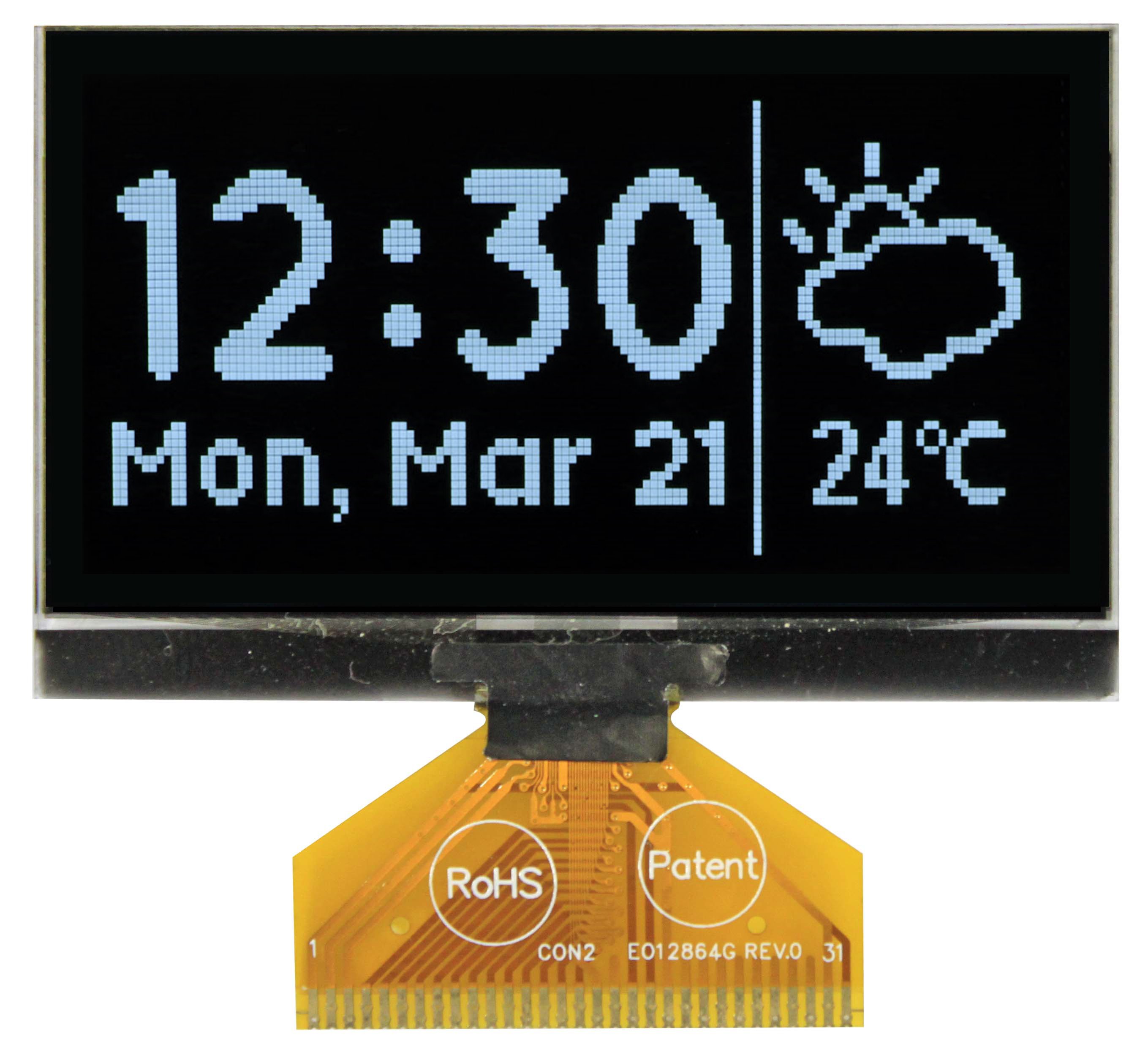 This is 2.42in White Passive matrix OLED Display 128 x 64pixels COT Multi Interface manufactured by Midas. The manufacturer part number is MCOT128064E1V-WM. It has a/an white colour display . Moreover, it has a multi interface ports . It has approximately 55.01 x 27.49mm viewing area dimensions . It has a/an passive type matrix . It has a cot mounting driver . Features 128 x 64pixels resolution. It has about 2.42in diagonal display size .