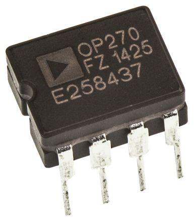 This is Op Amp 5MHz 8-Pin CDIP manufactured by Analog Devices. The manufacturer part number is OP270FZ. While ±12 v, ±15 v, ±5 v, ±9 v is the typical dual supply voltage. Features 5mhz typical gain bandwidth. The given dimensions of the product include 10.29 x 7.87 x 3.56mm. The product is available in through hole configuration. Furthermore, it has a typical 2.4v/µs of slew rate. It is a type of dual power supply. It comprises 2 channels per chip. Rail to rail options include no. In addition, the height is 3.56mm. Furthermore, the product is 7.87mm wide. Its accurate length is 10.29mm. The package is a sort of cdip. Whereas, the minimum operating temperature of the product is -40 °c. Furthermore, its typical voltage gain includes 124.6 db. It has a maximum operating temperature of +85 °c. It contains 8 pins.